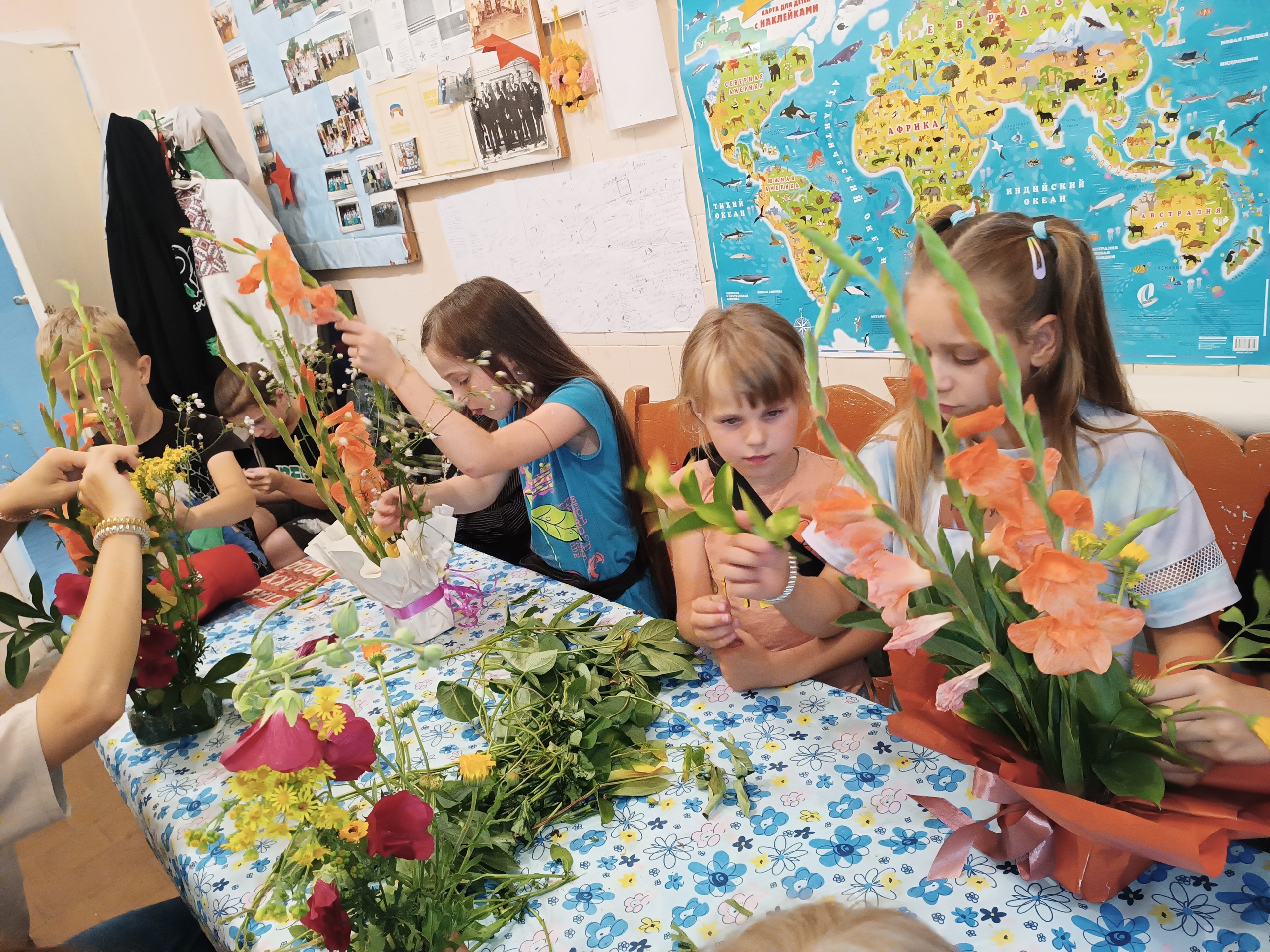 Дети с интересом слушали и учились, а также с удовольствием пробовали делать букеты самостоятельно.