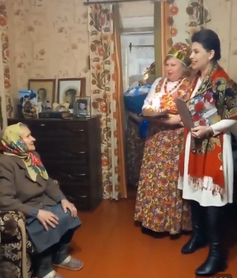 11 января поздравления принимала жительница деревни Тростань Раиса Петровна. По просьбе ее родных из Ярославля вокальный коллектив «Рябинушка» пел ей песни, Мария Родионцева исполняла частушки, а руководитель ансамбля Светлана Федюк преподнесла торт с зажженными свечами желаний.