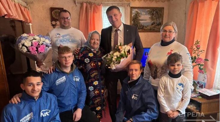 Вместе с молодежью свидетельницу страшных событий Великой Отечественной войны поздравили ...