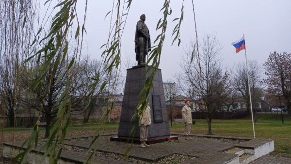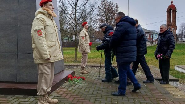 Память погибших почтили минутой молчания и возложили цветы к памятнику воинов-освободителей.