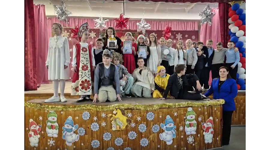 Ученики празднуют приближение Нового года вместе со своими преподавателями. Ребята подготовили ...