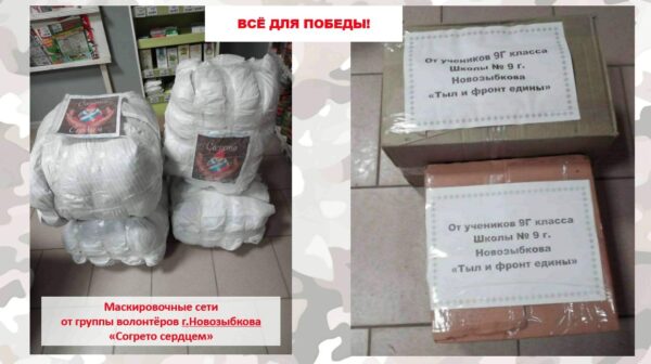 Необходимые вещи и продукты питания для военнослужащих родители и ученики школ Новозыбковского городского округа передают на постоянной основе. И каждая обратная связь от ребят из-за «ленточки» становится подтверждением важности и нужности таких посылок. Недавно в 9 школу пришло письмо с Запорожского направления, куда отправлялись посылки в ноябре. Солдаты отчитались, что всё получили: и письма, и вкусняшки, и другие вещи, так необходимые на фронте. «Спасибо вам, дорогие наши Защитники! Выражаем свою признательность за тяжёлый труд и желаем мужества, стойкости, выполнения всех поставленных целей!», — поблагодарили военных родители.