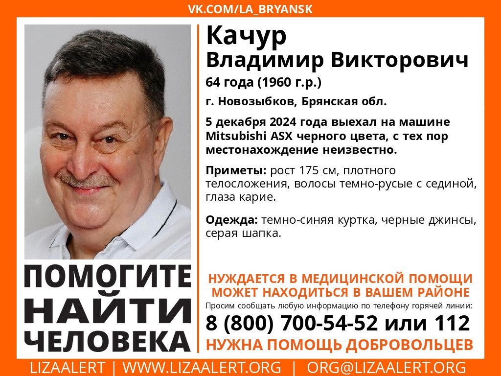 Напомним, 64-летний Владимир Качур 5 декабря уехал из дома на совеем автомобиле «Мицубиси» и пропал. К поискам мужчины подключились добровольцы «Лиза Алерт». К сожалению, накануне волонтеры опубликовали печальную новость: «Найден, погиб. Искренние соболезнования родным и близким. Спасибо всем, кто принимал участие в поиске».