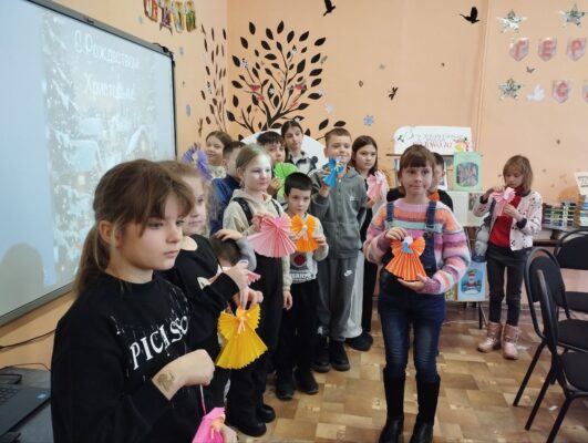 В детской библиотеке работала творческая мастерская. Девчонки и мальчишки не только узнали много нового и интересного о Рождестве и Сочельнике, но и создали своими руками ангелочков из бумаги.