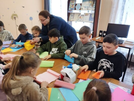 В детской библиотеке работала творческая мастерская. Девчонки и мальчишки не только узнали много нового и интересного о Рождестве и Сочельнике, но и создали своими руками ангелочков из бумаги.
