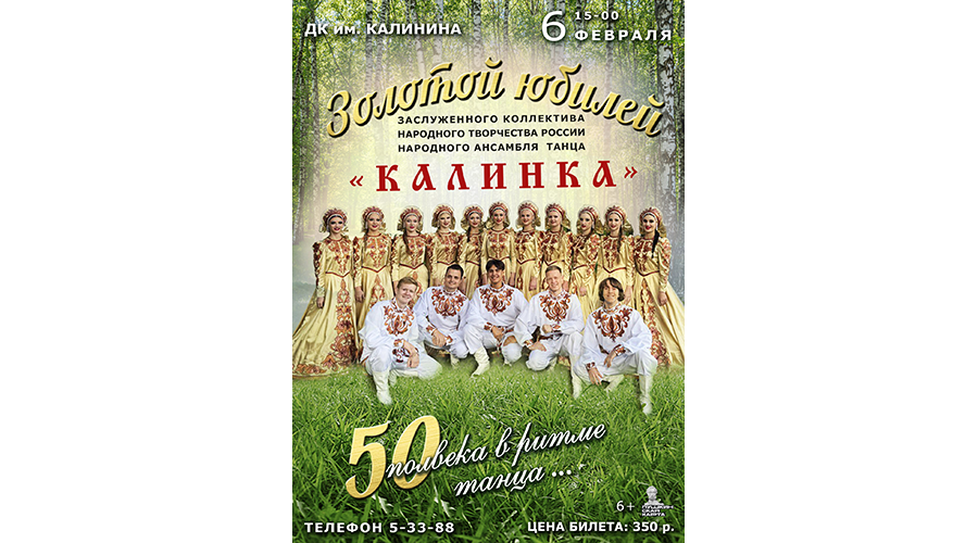6 февраля в городском Доме культуры Новозыбкова состоится большой праздничный концерт, посвященный 50-летию народного ансамбля танца «Калинка», удостоенного почетного звания «Заслуженный коллектив народного творчества России».