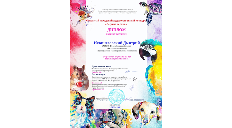 Ребята из детской художественной школы получили награды двух конкурсов: Открытого областного ...