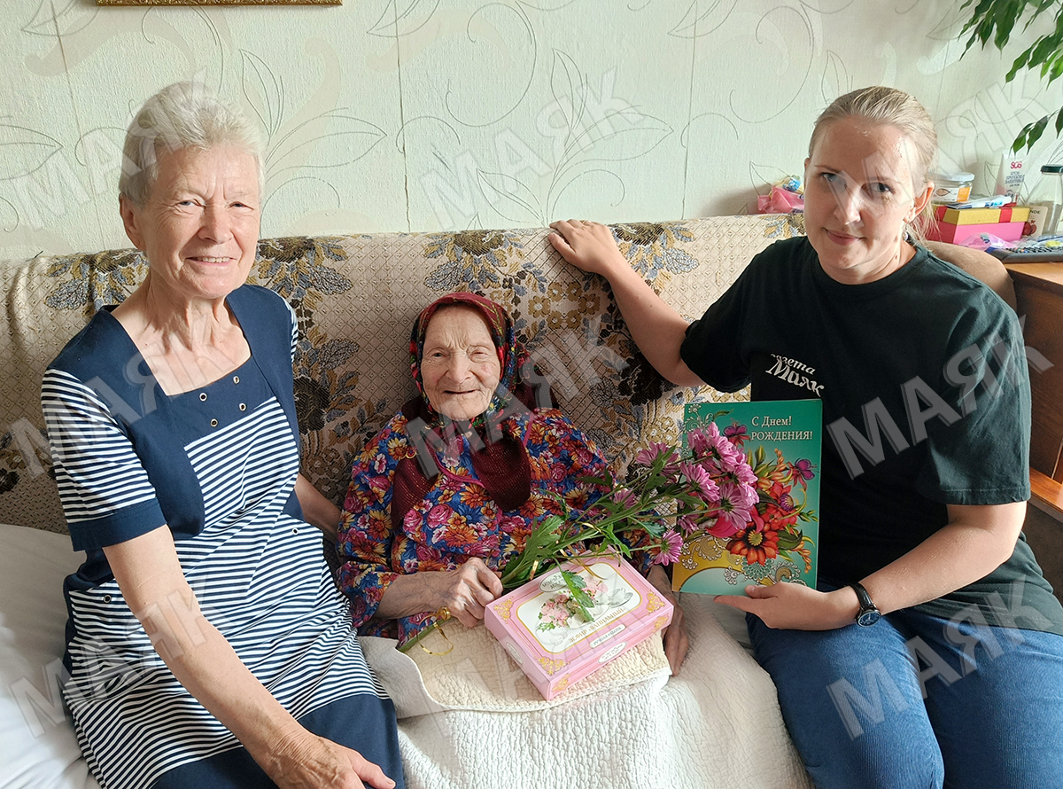 Традиционно, с цветами, сладкими презентами и наилучшими пожеланиями, корреспонденты «Маяка» отправились в гости к имениннице, где их радушно встретила младшая дочь Агриппины Герасимовны — Валентина, которая поведала, что бабушка, как и прежде, главная опора всей семьи, а она у нее большая — 7 внуков, 7 правнуков и два праправнука. Век и три годи отметила в теплом семейном кругу.