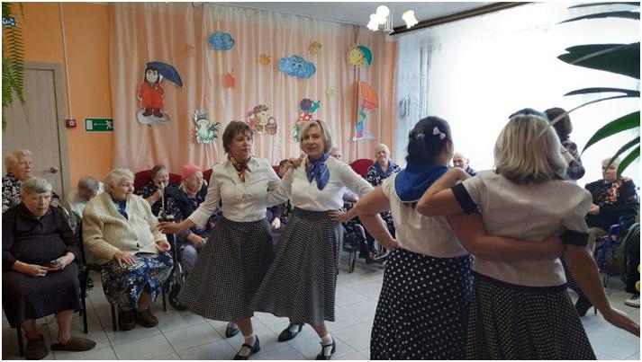 В гостях у одиноких пожилых людей из Новозыбковского дома-интерната побыл танцевальный коллектив «Палитра». Яркие танцевальные номера чередовались со стихотворениями авторства Елены Трубеневой. Каждый номер пожилые люди сопровождали щедрыми аплодисментами. Благодарные зрители не могли оторвать глаз от танцующих пар.