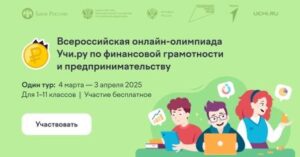 4 марта стартует Олимпиада по финансовой грамотности и предпринимательству на образовательной платформе Учи.ру. Ее организуют Банк России, Минфин, Минэкономразвития и АНО «Национальные приоритеты». Принять участие можно в любой день до 3 апреля.