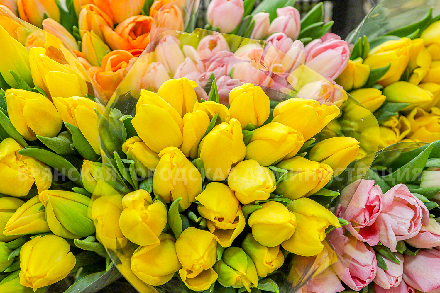 В «Зеленом хозяйстве» начали готовиться к празднику еще в зимние каникулы. Было высажено около 20 000 луковиц популярных сортов «Альбатрос», «Династия», «Первая звезда», «Дания» и других. В начале февраля в теплице подняли температуру выше 20 градусов Цельсия, обеспечили обильный полив, чтоб ускорить рост растений. Сейчас их срезают и укладывают на хранение в холодный погреб, где тюльпаны будут дожидаться покупателей, сообщает Брянская городская администрация.