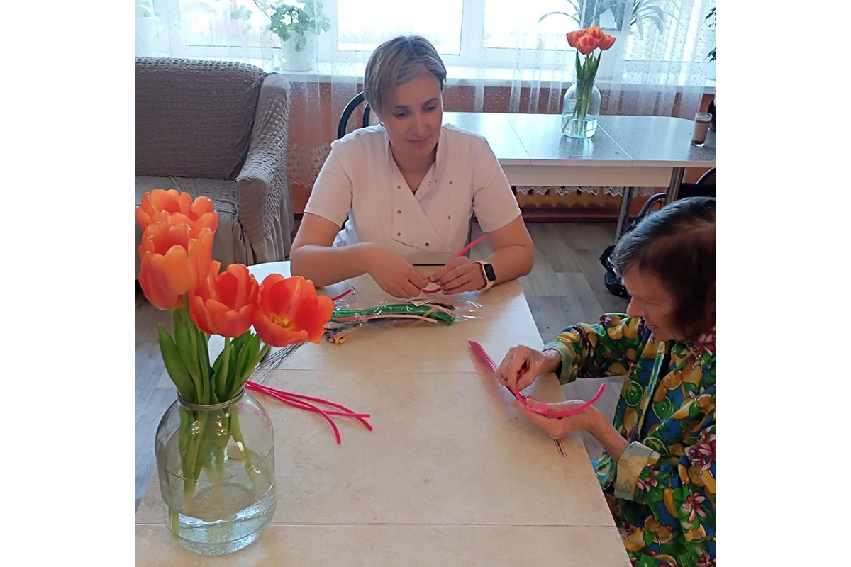 Синельная проволока, это мягкий и податливый материал, и которого можно создать красивые поделки. Но в рамках социальной реабилитации для пожилых людей увлекательный процесс направлен не только на творчество, но и на развитие и укрепление мелкой моторики. Творческий подход и совместная деятельность улучшают эмоциональное состояние участником. Под руководством наставника Екатерины Дыбенко пожилые люди создали красивые букеты цветов, которые будут радовать глаз долгое время.