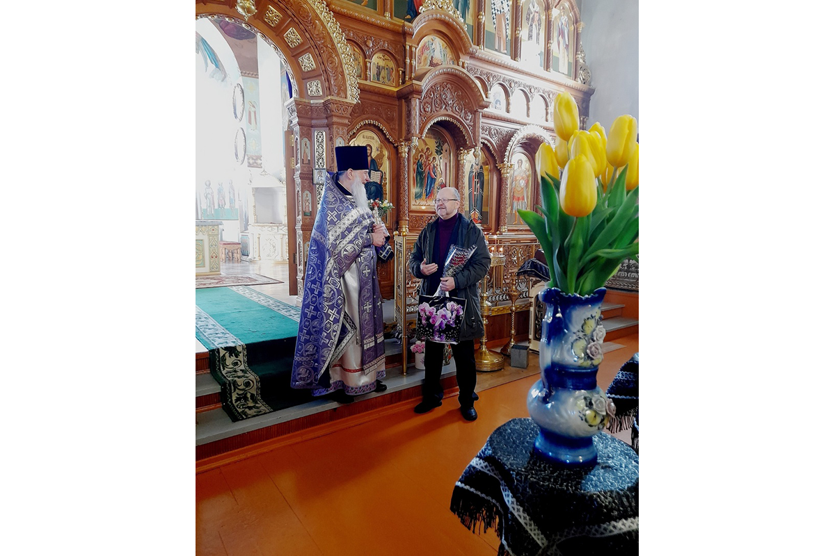 От лица прихожан батюшку поздравила регент Храма Елена Мельникова, отметив мудрое духовное руководство, молитвенный настрой, твердость и строгость в исповедании веры, пожелала ему: «…Божией милости, крепости духовных и телесных сил в нелегких пастырских заботах, в служении Господу и Матери Церкви. Да умножит Всемилостивый Господь годы Вашего служения в нашем приходе, благословит все Ваши труды и благие начинания! Пусть Господь укрепит Вас, а также молитвенно просим милости Божией для всей Вашей семьи!»