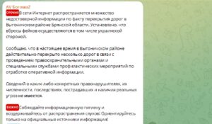 — В сети Интернет распространяется множество недостоверной информации по факту перекрытия дорог в Выгоничском районе Брянской области. Установлено, что вбросы фейков осуществляются в том числе украинской стороной.