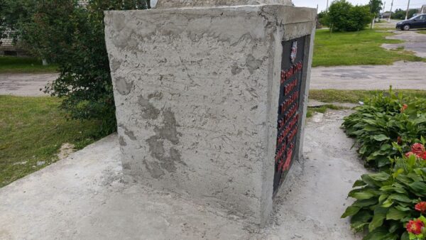 В селе Шеломы подрядчик приступил к оштукатуриванию постамента скульптуры «Воин». После покраски на свои места вернутся обновленные таблички с фамилиями погибших односельчан.