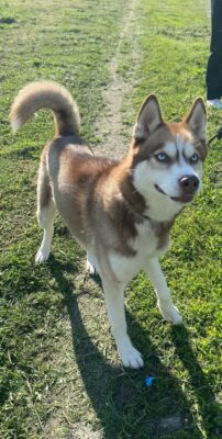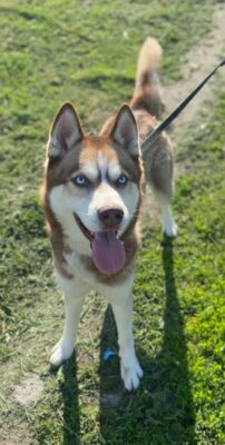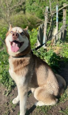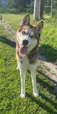 О Купере. Ему 4 года. Пёс красавец, но, если бродит на улице, может уже потерять свой лоск. Окрас рыжий, глаза голубые.