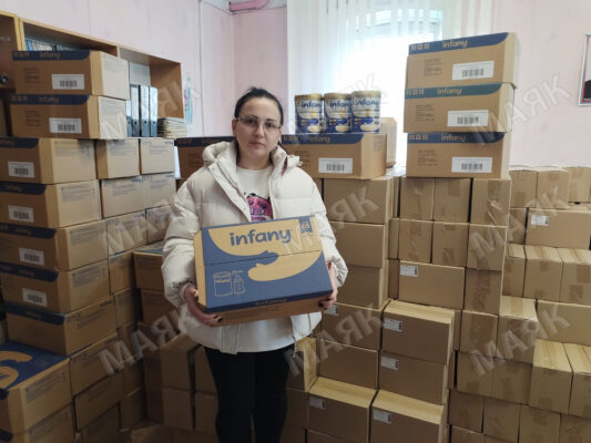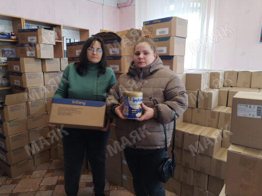 Коробки с гипоаллергенной французской смесью поступили благодаря помощи фонда Примакова. Более полутора тысяч банок питания доставлены в центр. Получить их могут жители приграничья, в которых воспитываются дети до трёх лет.