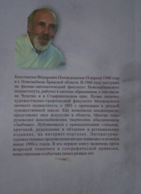 Ее автор – известный в округе и за его пределами художник, краевед и публицист Константин Попов, многие годы руководивший новозыбковским творческим объединением «Зыбчане». Ранее Константин Федорович неоднократно публиковался с краеведческими статьями, критикой, рецензиями и обзорами в региональных изданиях, на интернет-порталах. Литературно-художественные произведения автора появились в печати в конце 1990-х годов.