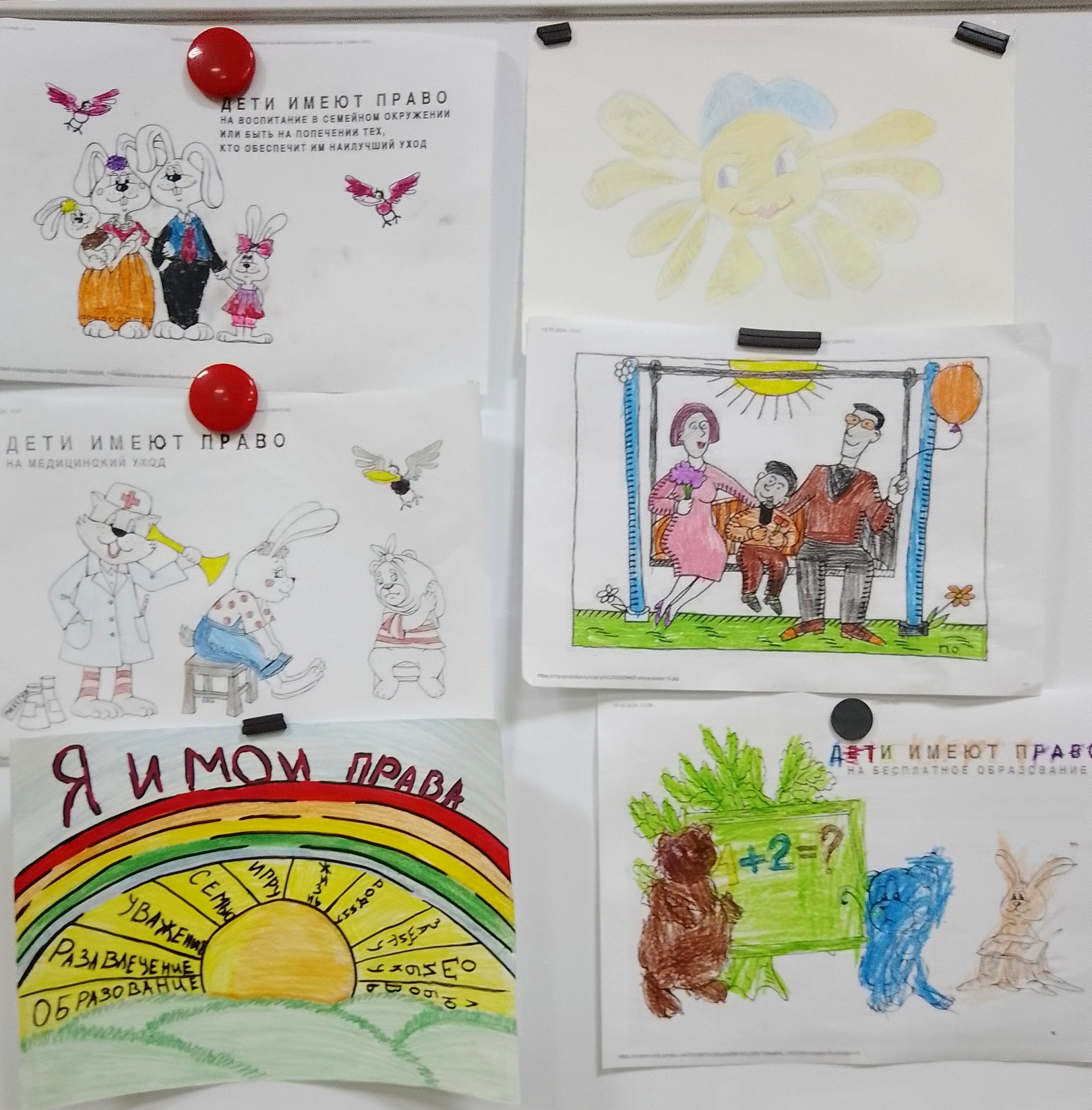 Ребята изобразили на рисунках свои права на образование, на семью, на медицинское обслуживание. Каждый художник старался вложить в рисунок своё видение определенного права или изобразить права детей все сразу.