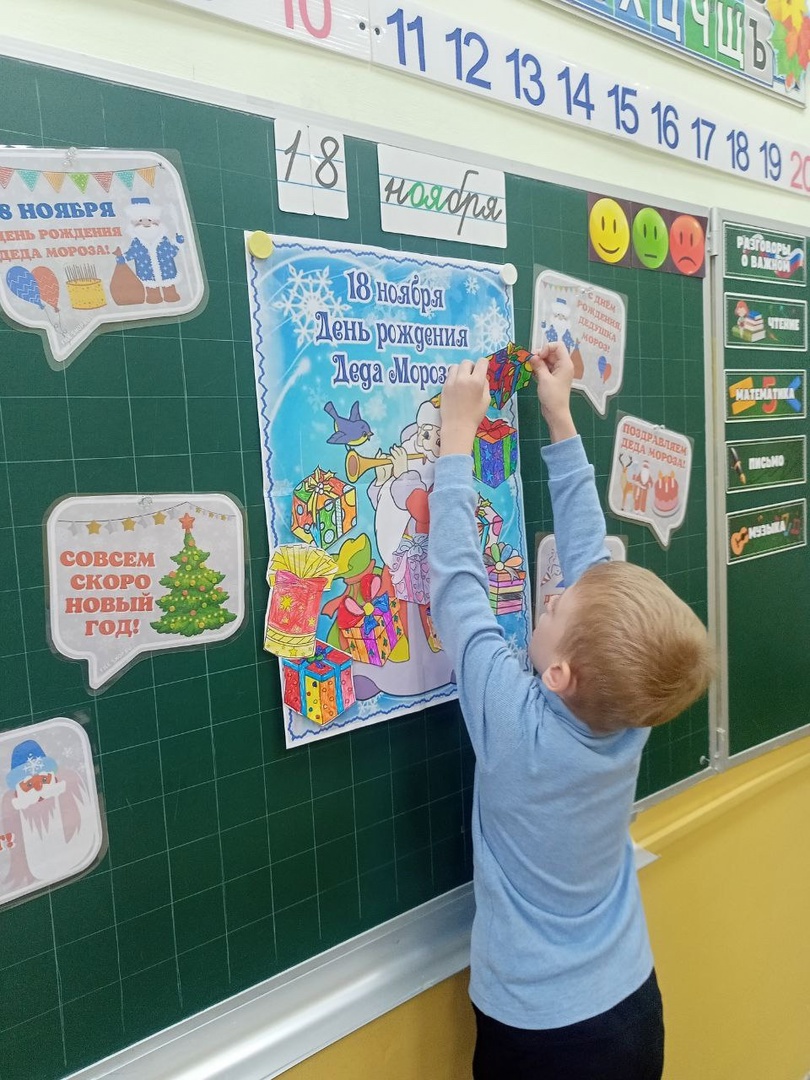 18 ноября ученики 1 «Б» и 2 «Б» классов первой школы дарили подарки новогоднему волшебнику. Для ребят прошли тематические пятиминутки, посвященные Дню рождения главного сказочного персонажа русского праздника Нового года, всеми любимого Дедушки Мороза.