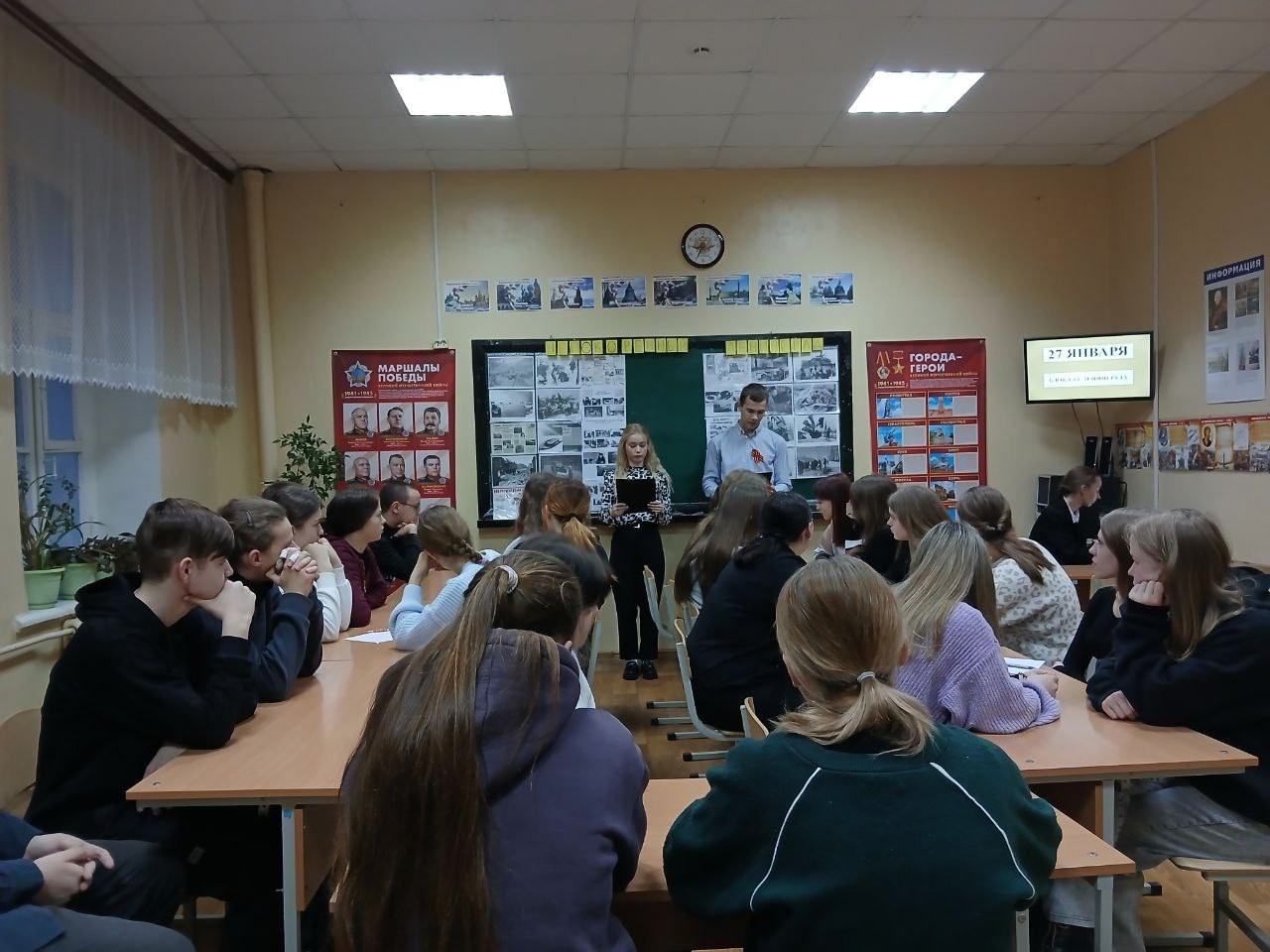 На этой неделе для первокурсников организовали тематическую викторину, посвященную годовщине снятия блокады Ленинграда. Ведущие напомнили ключевые факты из истории блокадного города, все участники почтили память погибших минутой молчания. Команды «прошли» по станциям «опросник», «блокада в цифрах», «перо-штык войны», «ленинградские факты», «блокадная память». В тройку лидеров вошли студенты 11 Б, 16, 13. 17 и 15 групп.