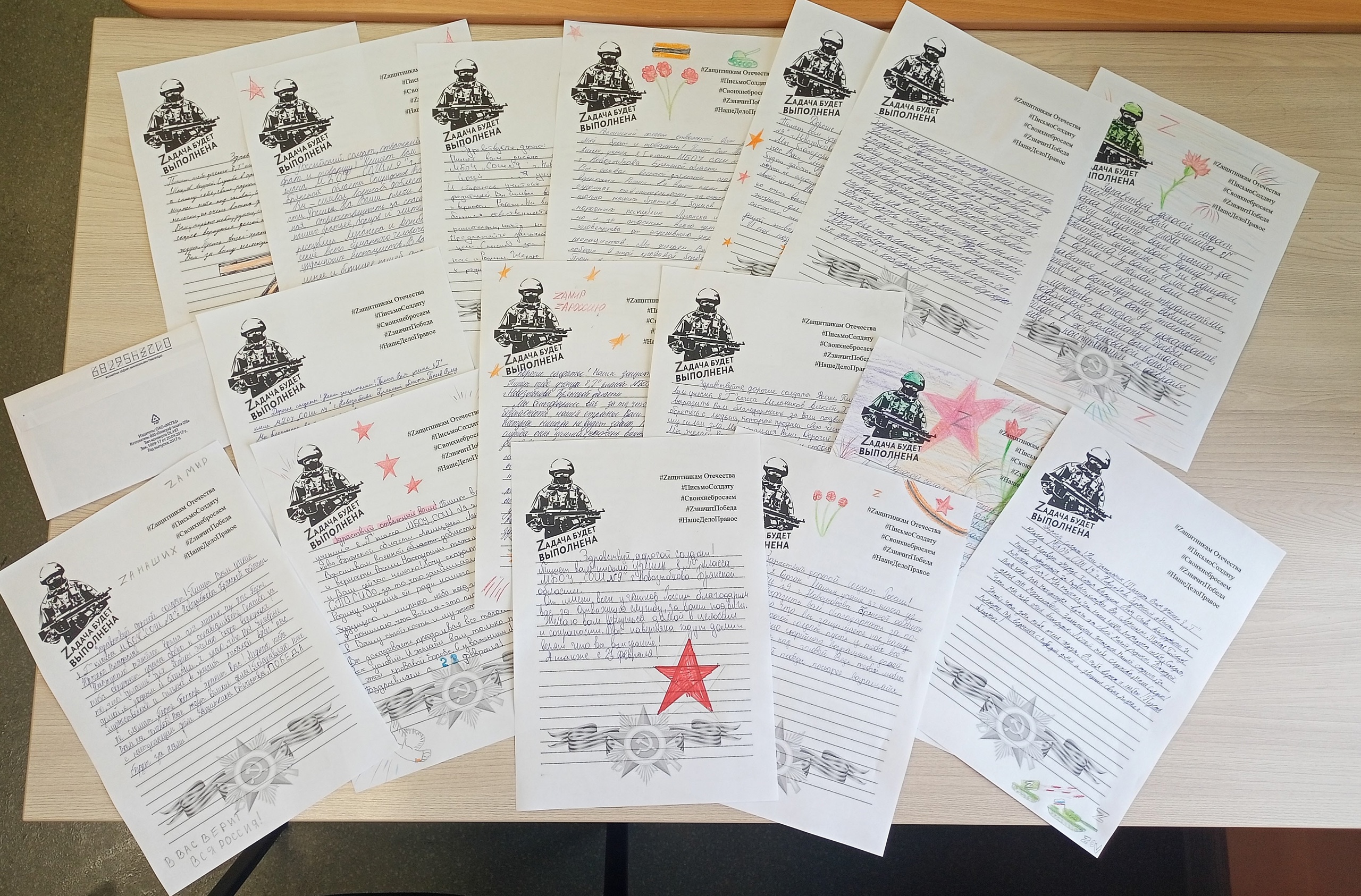 В них ученики выразили свою признательность, пожелали нашим солдатам мужества и стойкости, скорейшего возвращения домой с Победой, поздравили с наступающим Днём защитника Отечества. В каждом письме — душа и слова поддержки. Заветные конверты отправлены через полевую почту МОСКВА — 400 на Запорожское направление.