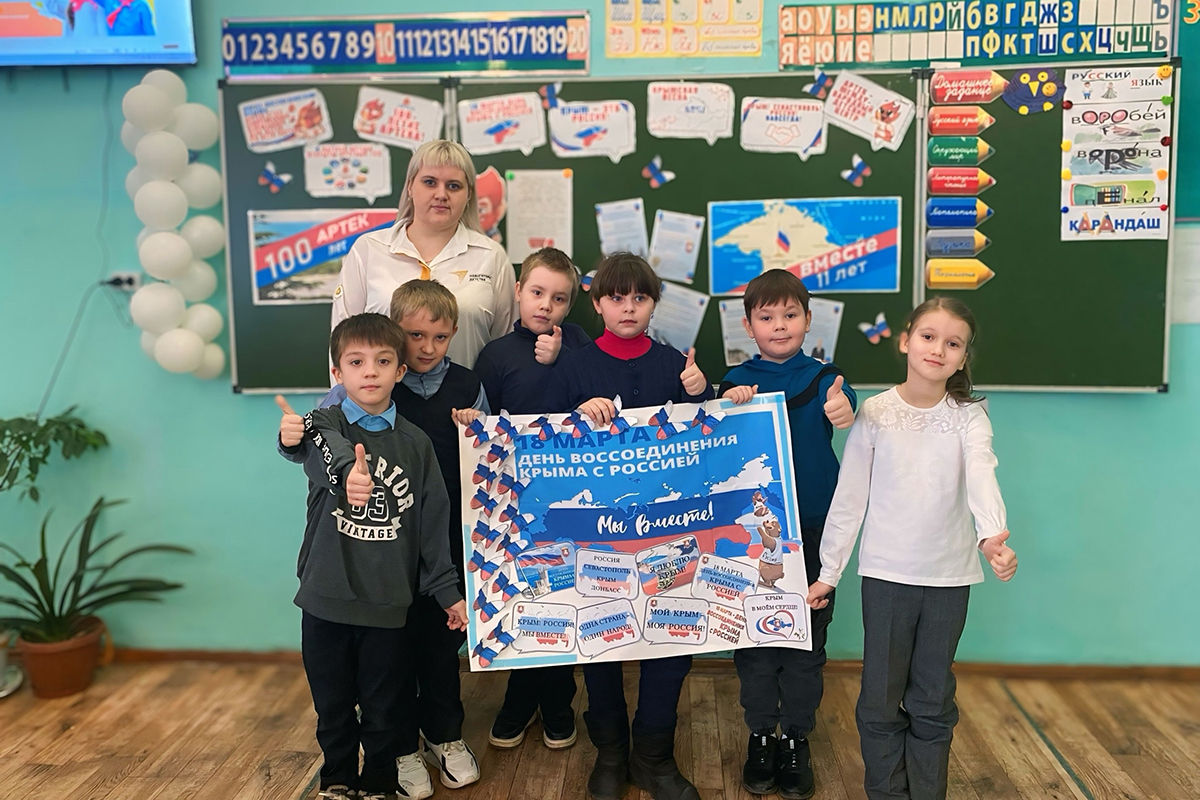 Новозыбковские школьники в структурном подразделении четвертой школы отметили День воссоединения России и Крыма. Активисты «Движения Первых» приняли участие во Всероссийской акции «Краски Крыма». Ребята открыли для себя много нового и увлекательного о Крыме и его жителях, о процессе воссоединения с Россией.