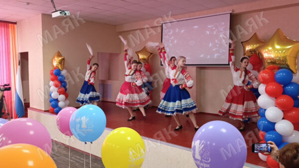 С музыкальным поздравлением выступил народный коллектив «Светлячок» под руководством Ольги Белас. А будущие выпускники выступили с напутственными словами к первоклассникам.