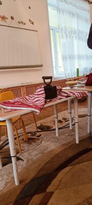 Они провели экскурсию «Русская изба и быт людей первой половины ХХ века». Дети познакомились с предметами старинного русского быта: печкой, кухонной утварью, одеждой, рукоделием и многим другим. А еще воспитанники детского сада узнали старинные слова, которые использовались только в быту в русской избе: ухват, чугун, рубель, прялка, сечка, корытце, веретено.