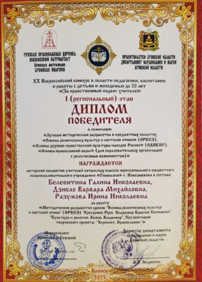 Диплом был вручен 18 ноября на XXVI Рождественских образовательных чтениях в Брянской епархии.