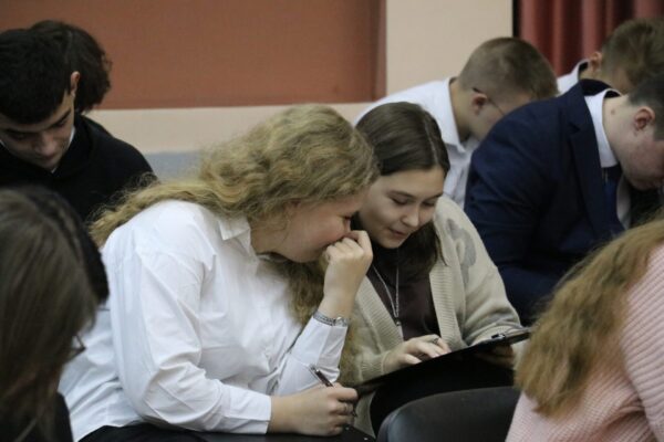 В этот раз он посвящен 80-летию Победы в Великой Отечественной войне 1941-1945 годов и Году Защитника Отечества. Студентки Новозыбковского педколледжа Ярослава Гроздева и Карина Дайнеко прошли тестирование на знание событий Великой Отечественной войны и викторину.
