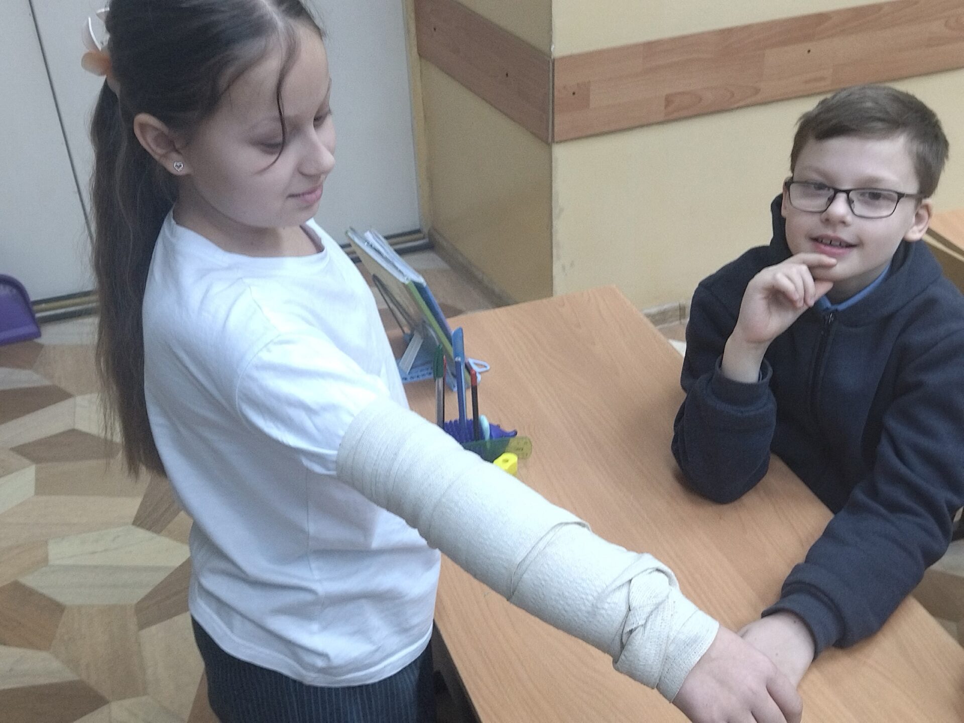 Ребята узнают о различных видах кровотечений, учатся правильно накладывать жгуты и повязки. Школьники практикуются на перевязке ран, осваивая необходимые навыки.