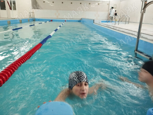 Потом сборные школ распределились на группы: часть детей пошли на лыжероллерную трассу, кто-то пошел к барьеру с винтовкой, а кому-то выпала честь защищать родное учреждение в бассейне на улице 307 Дивизии.